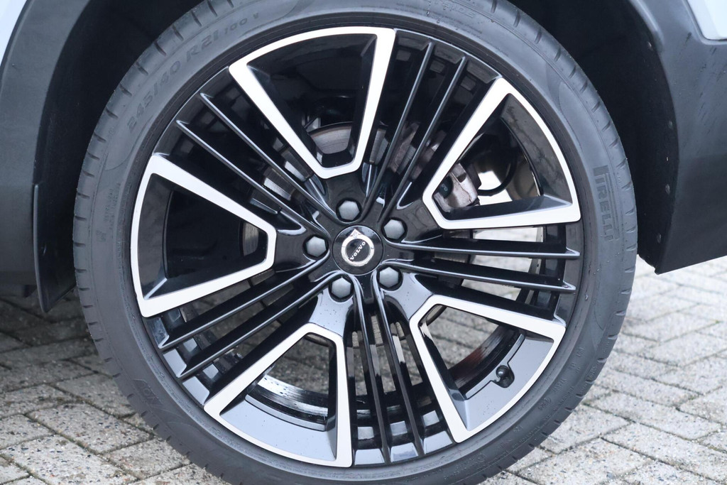 Uitgevoerd in Glacier Silver Metallic met glossy black R-Design accenten en imposante 21 inch velgen straalt deze Volvo pure klasse en dynamiek uit.